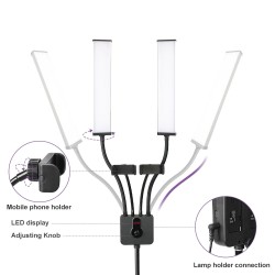 Lampada LED con Doppio Braccio, treppiede, supporto per smartphone e 45W di potenza, regolazione della temperatura e...